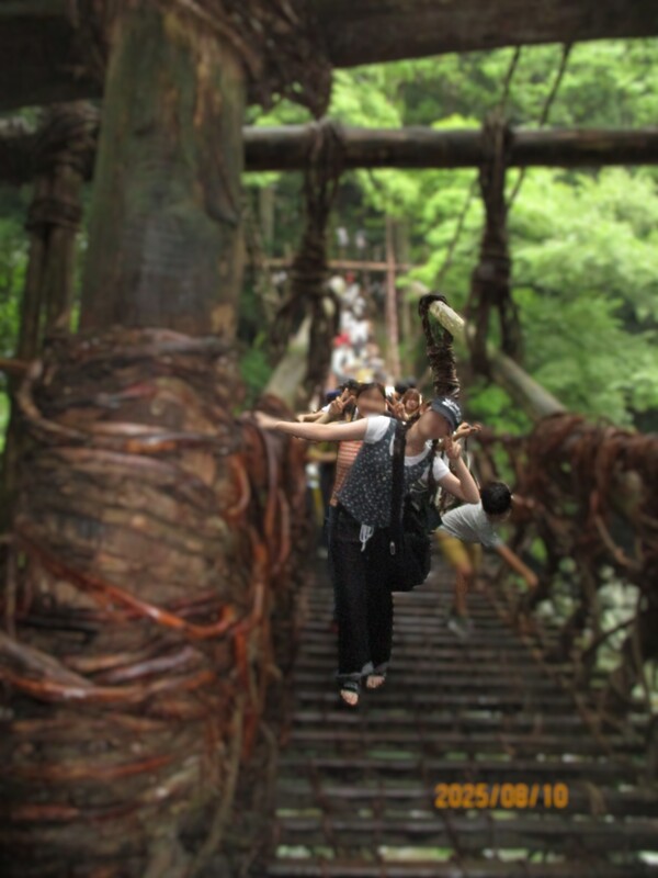 8月10日(日)、合宿教習の合間に教習生12名が「大歩危峡」見学や国指定重要有形民俗文化財「祖谷のかずら橋」の渡橋体験ほか、徳島名物「たらいうどん」を食する「にし阿波」ミニ観光を満喫!